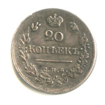 20 копеек — Орел 2 типа. Корона меньше 1826 СПБ НГ