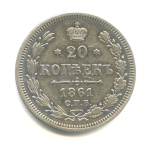 20 копеек — Орел 3 типа 1861 СПБ ФБ