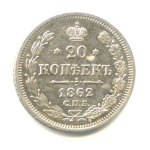 20 копеек — Орел 3 типа 1862 СПБ МИ