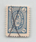 Российская Империя. Земская почта. Сапожковский уезд. 5 коп. Синяя № 23 (Соловьев 10 $) Гашение пером