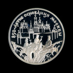 🎞️ 3 рубля — 850-летие основания Москвы (набережная) — В капсуле, с сертификатом. Банковская сохранность монеты 1997 ЛМД