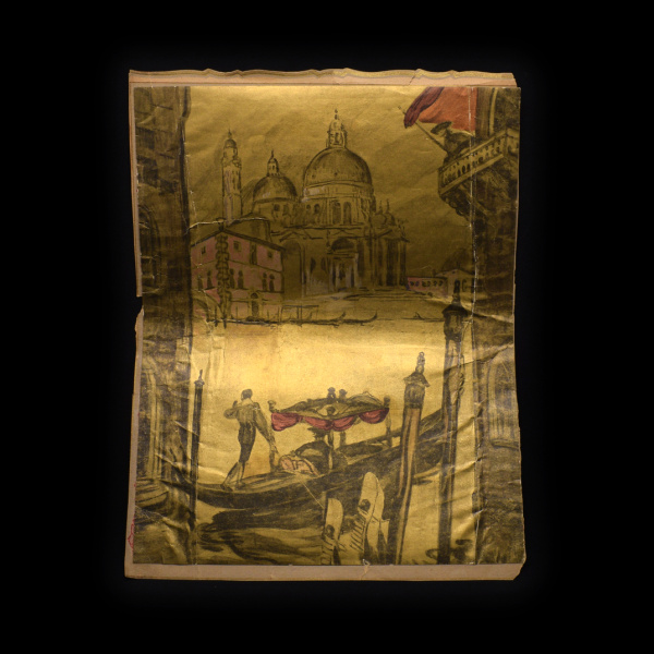 Хромолитография Венецианский гондольер на фоне собора. Размер 22×28,5 см