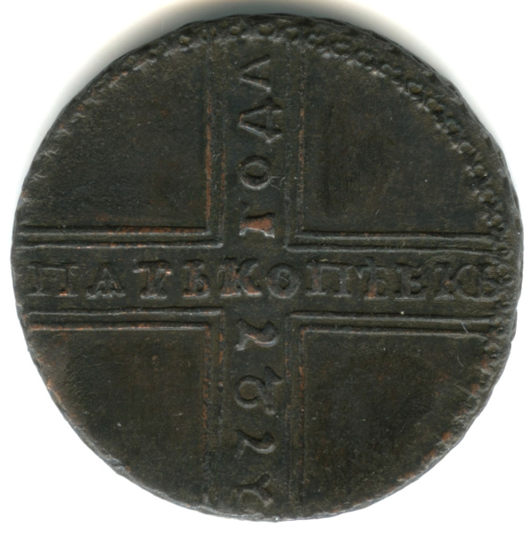 5 копеек — Крестовые 5 копеек 1727 МД. Очень редкая в подобной сохранности (Российская Империя)