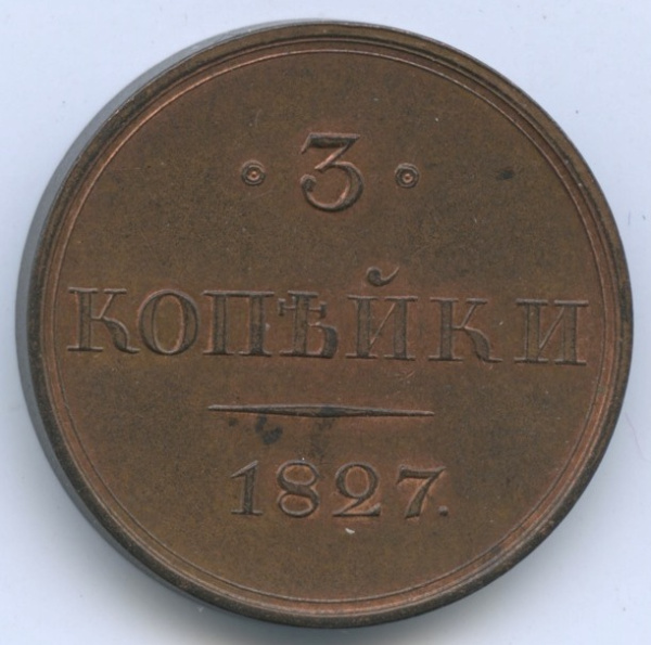 3 копейки 1827 CПБ. Новодел. Фрагменты красного штемпельного блеска. Биткин — 916 (R2) (Российская Империя)