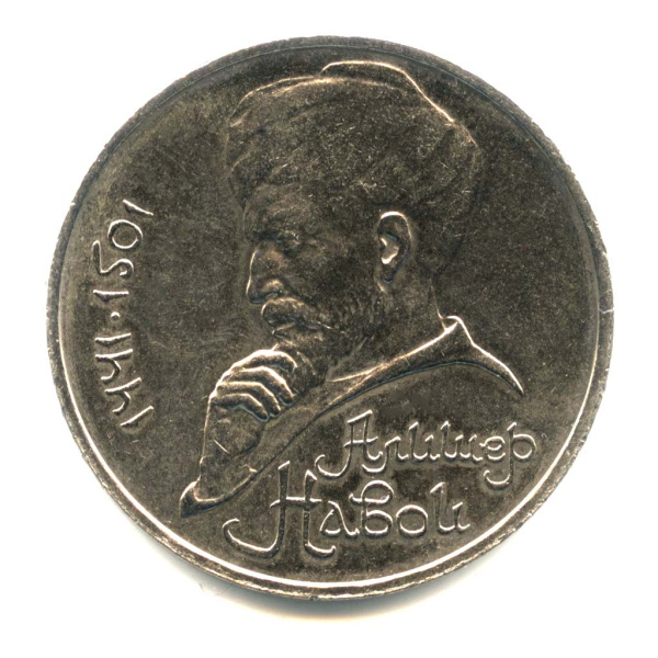 1 рубль — 550 лет со дня рождения Алишера Навои 1990. Ошибка в годе - (СССР)