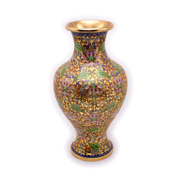 Ваза. Латунь. Разноцветные эмали. Размер 15×28 см