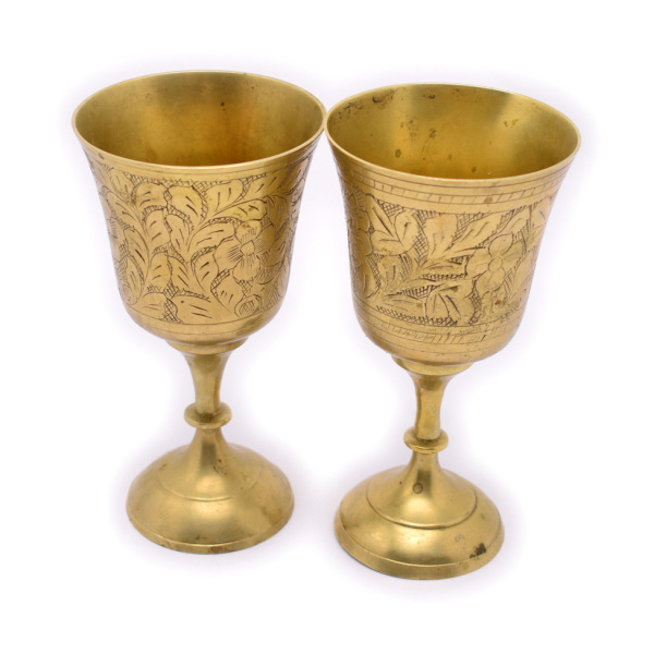Лот латунных бокалов с цветочной гравировкой. 2 шт. Размер 7×13 см