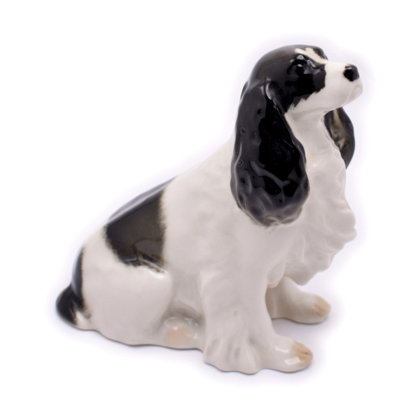 Статуэтка «Спаниель», скульптор П.П. Веселов, фарфор, роспись, Ленинградский фарфоровый завод (ЛФЗ). Размер 13×14 см (СССР)