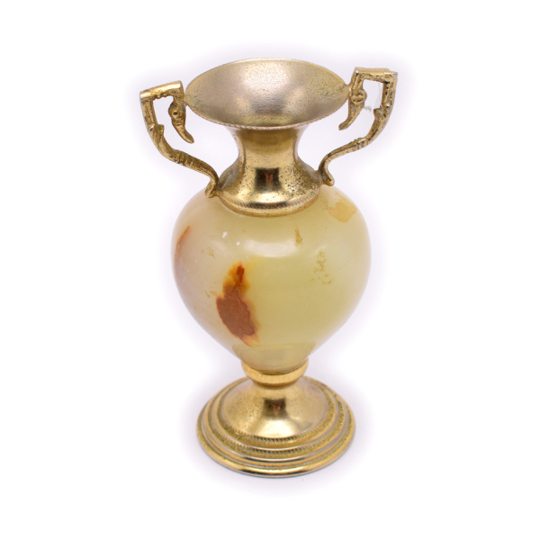 Вазочка из оникса с латунными вставками. Размер 7,5×12 см