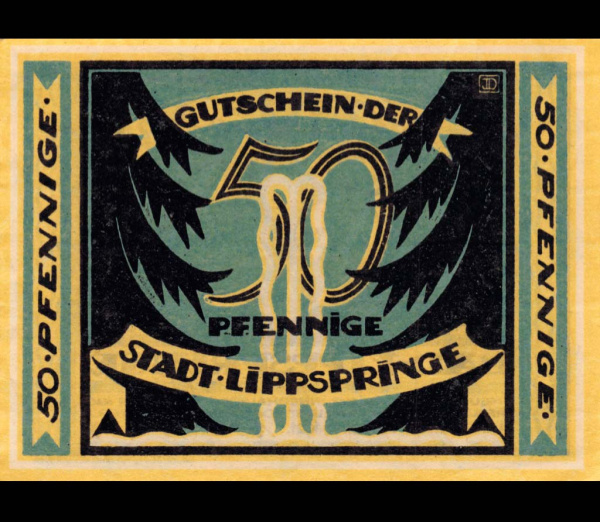 50 пфеннигов — Бад-Липпшпринге 1921. Экземпляр из крупной коллекции мирового уровня (Германия (Нотгельды))