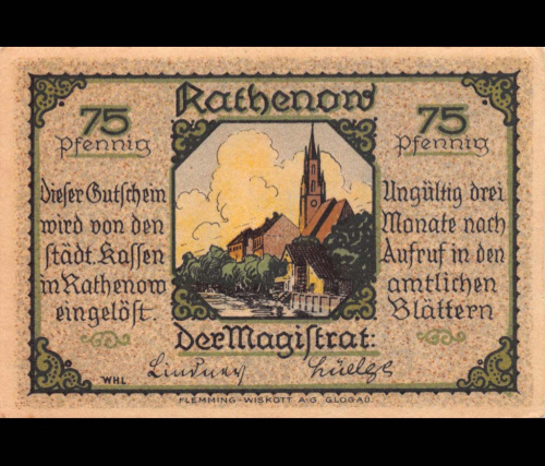 75 пфеннигов — Ратенов 1921. Экземпляр из крупной коллекции мирового уровня (Германия (Нотгельды))
