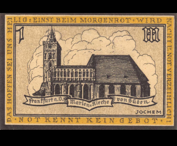 1 марка — Франкфурт 1921. Экземпляр из крупной коллекции мирового уровня (Германия (Нотгельды))