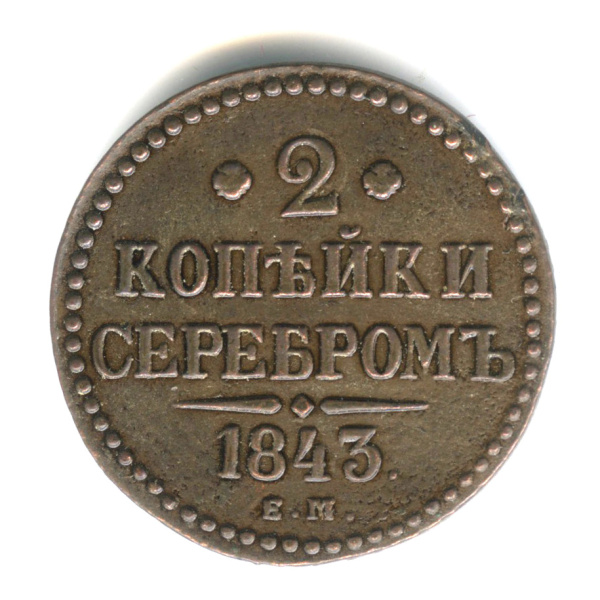 2 копейки серебром 1843 ЕМ (Российская Империя)