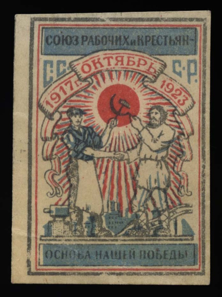 Марка непочтовая «Союз рабочих и крестьян — основа нашей победы.» 1923 (РСФСР)