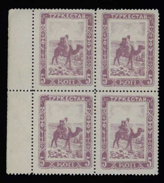 5 копеек — Туркестан. Генерал Дутов. Марка почтовая. 1921. Квартблок с полем (РСФСР)