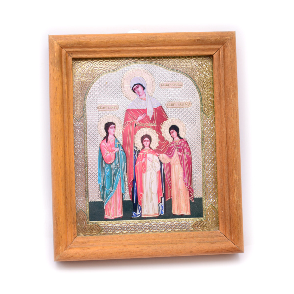 Икона святых мучениц Веры, Надежды, Любови и матери их Софии. Размер 12×14 см