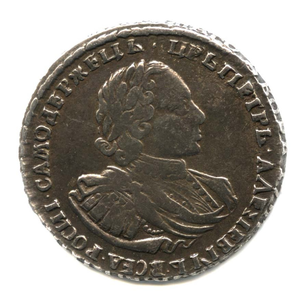 Полтина (50 копеек) — Портрет Петра I в наплечниках. С пальмовой ветвью на груди 1721 - (Российская Империя)