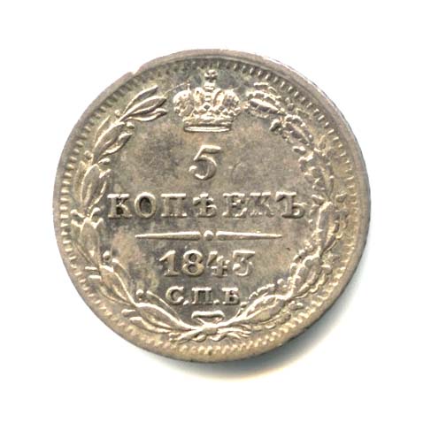5 копеек — Орел 1 типа 1843 CПБ АЧ. Оригинальный штемпельный блеск CПБ АЧ (Российская Империя)