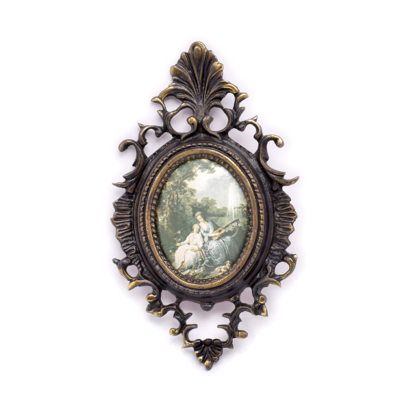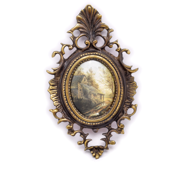 Винтажное настенное панно. Шелкография в бронзовой раме. Размер 13×22 см