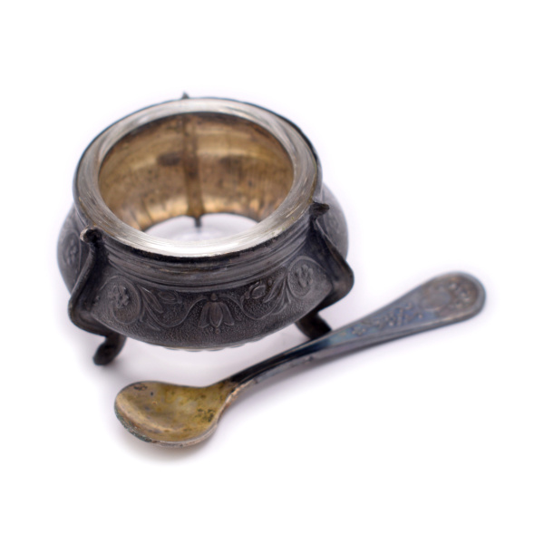 Солонка с ложечкой. Мельхиор (СССР)