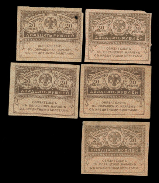 Лот банкнот «20 рублей». 5 шт 1917 (Российская Империя)
