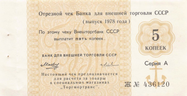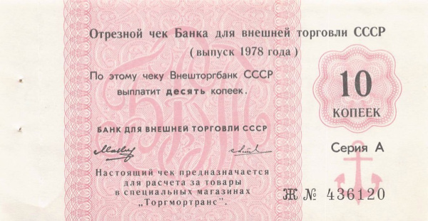 10 копеек. Отрезной чек 1978 (СССР)