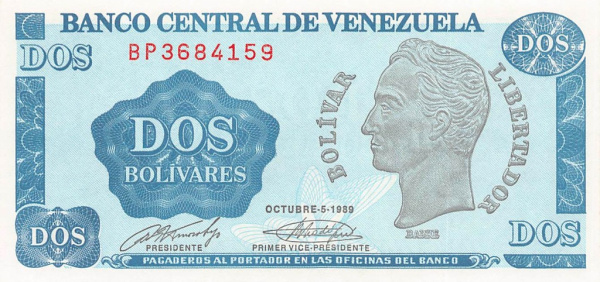 2 боливара (Pick: # 69) 1989 (Венесуэла)