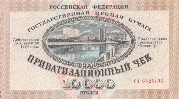 10000 рублей — Не гашеный: Без контрольного талона 1992 - (Россия)