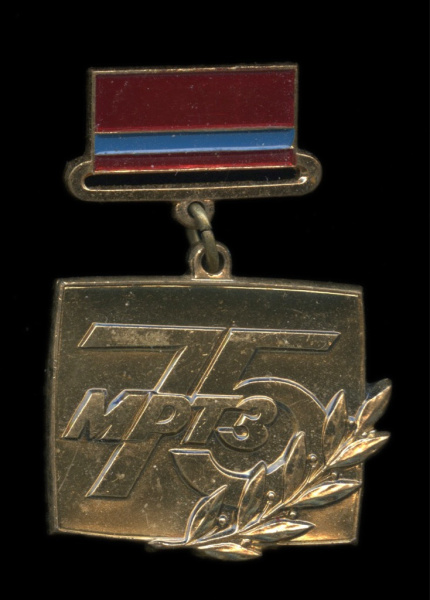 Знак «75 лет МРТЗ». Крепление: булавка. Тяжелый. московский радиотехнический завод (СССР)